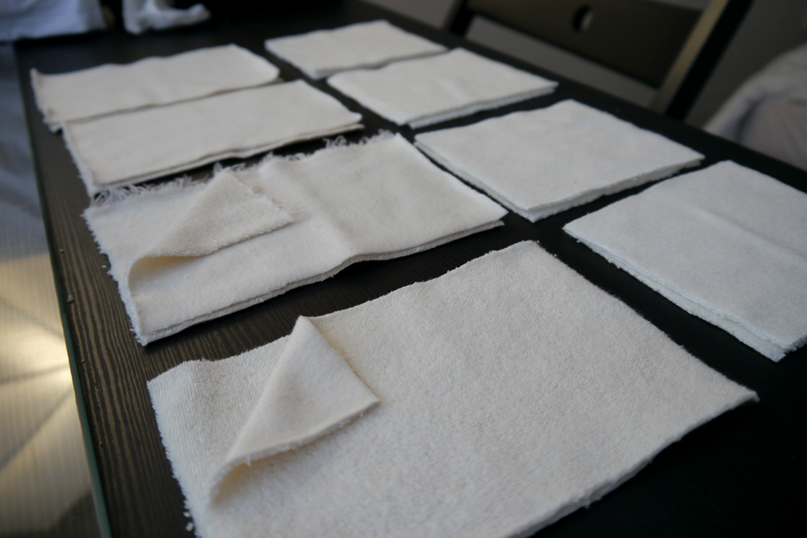 Néanmoins, si vous n’êtes pas équipée, vous pouvez tout simplement découper le tissu sans faire de couture et vous faire de petites débarbouillettes pour le visage, ça marche aussi et c’est vite fait !