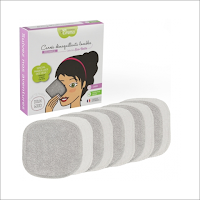 Parfois les carrés peuvent rester tachés de mascara. Pour éviter ça, frottez le carré avec un peu de savon de Marseille juste après utilisation, et passez le ensuite à la machine avec un peu de per percarbonate de sodium, il sera comme neuf.