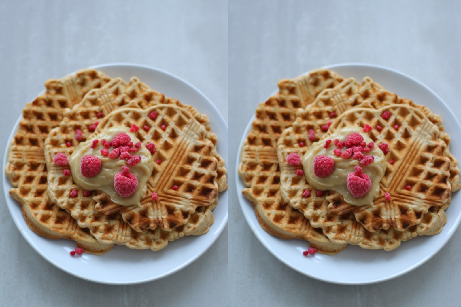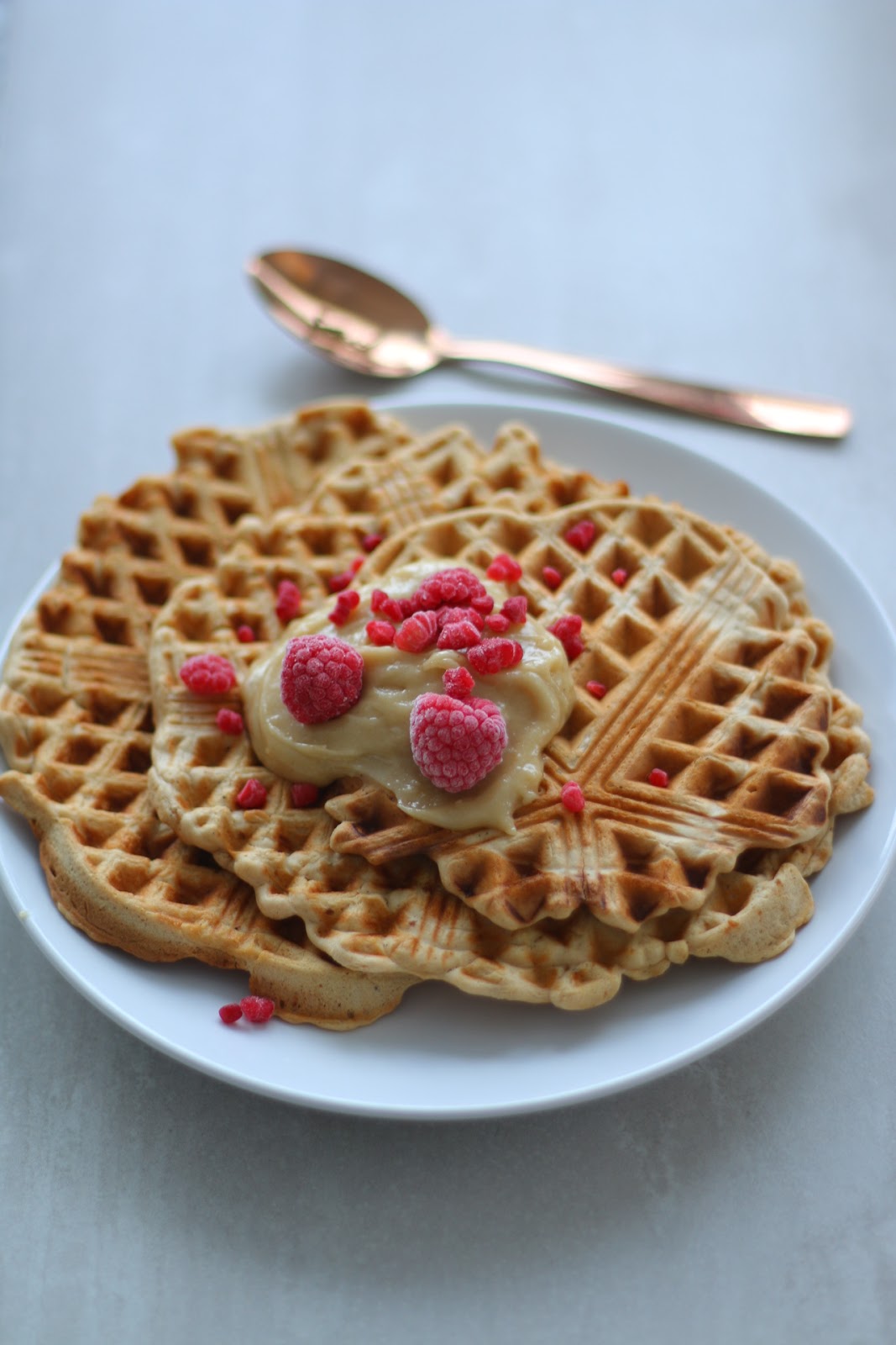 J’avais un sachet de protéines en poudre dont je ne savais pas trop quoi faire. J’ai un mauvais souvenir d’en avoir utiliser dans mes smoothies… Mais j’ai testé dans les gaufres et c’est parfait, je trouve que ça leur donne en plus une super tenue et consistance ! Donc voici ma recette de gaufres vegan protéinées super facile et délicieuse !