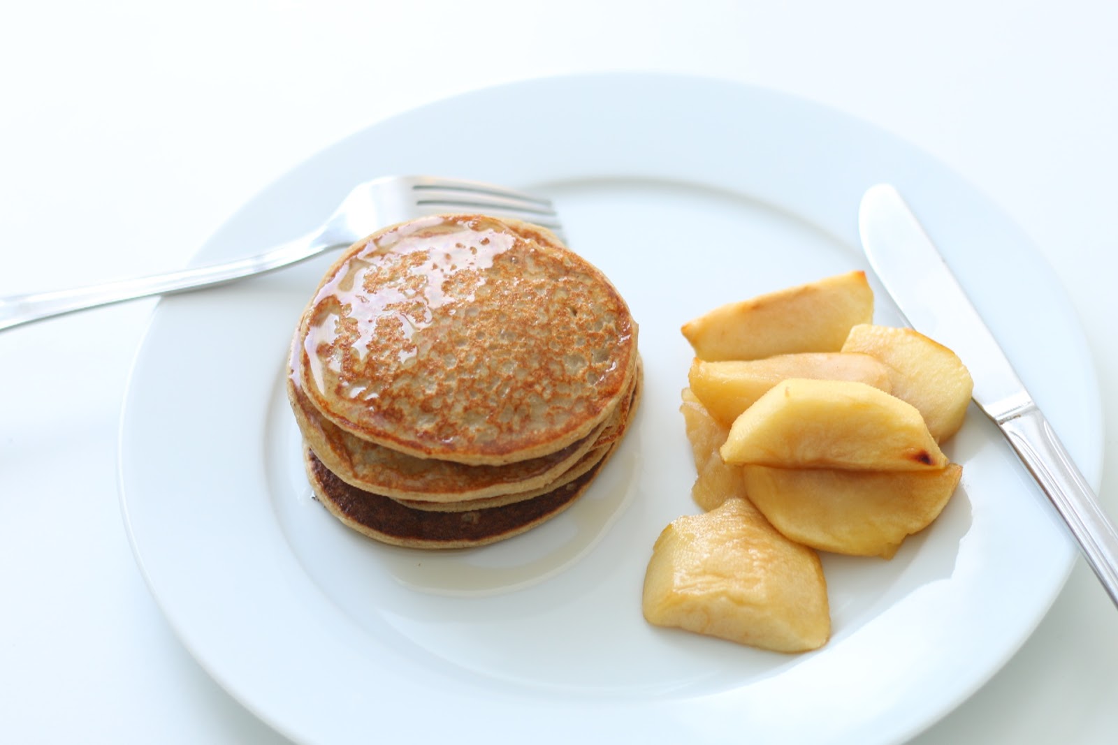 Pancakes et pommes cuites : le meilleur des petits déj ! Ceux qui me suivent depuis le début savent que ça fait déjà 3 fois que je décline le concept. Mais quand on aime on ne compte pas ! Cette recette est autant faite pour les petits déj’ tranquilles du weekend que pour la semaine. Il suffit d’en préparer une grande quantité pour la semaine, cela se conserve très bien au réfrigérateur et même au congélateur! Quelques secondes au micro-ondes le matin et hop, c’est prêt !